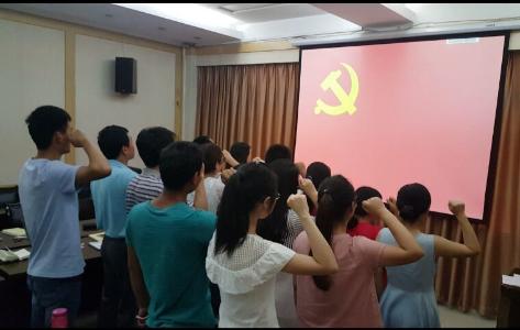 活动中,全体党员佩戴党员徽章,举起右拳,面对党旗端庄伫立,齐声宣誓,整个过程庄严肃穆。在党支部书记胡金兰解读签署党员承诺书活动意义之后,党员们写下承诺,签署“亮身份、作承诺、当先锋、树形象”承诺书,表示在工作中要以党员标准严格要求自己,自觉接受广大群众、学生和党组织的监督。